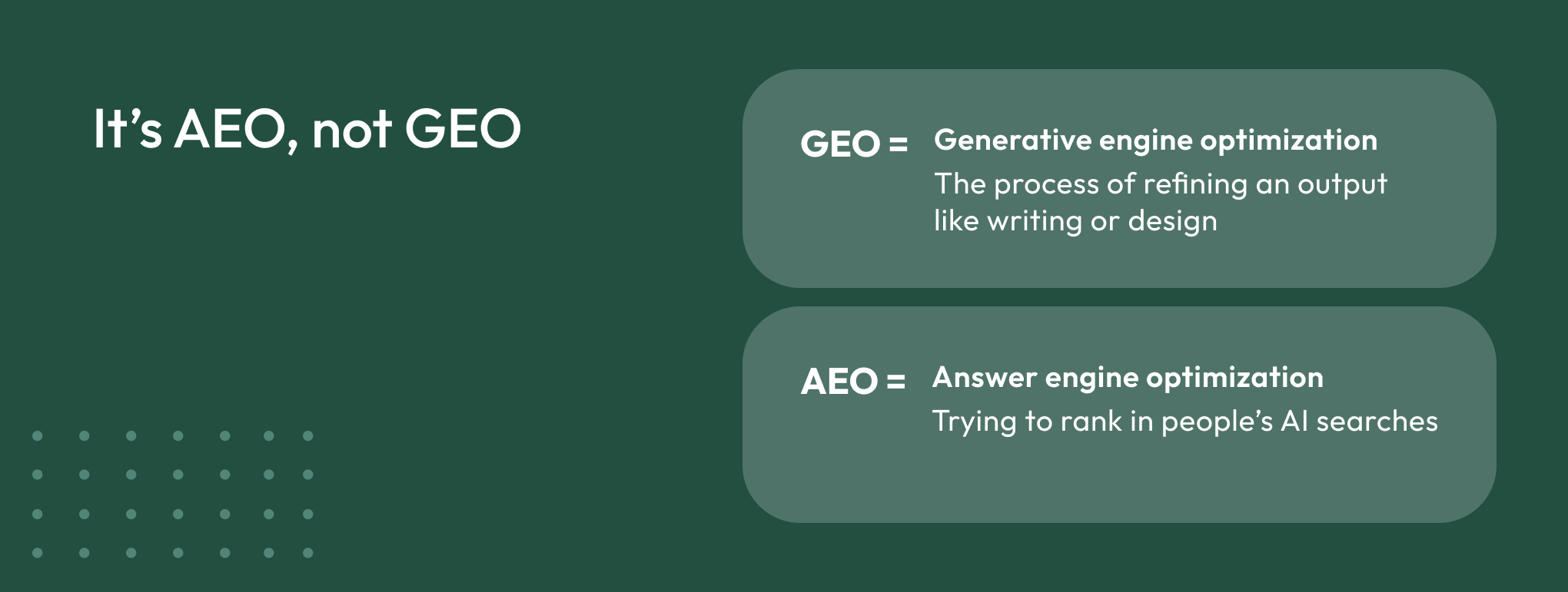 If you aren’t yet building or executing a strategy for how you’re going to win in AEO, now is the time to begin. Don’t feel bad about what you’re starting from. Everyone is still trying to figure it out, and there isn’t a playbook yet.